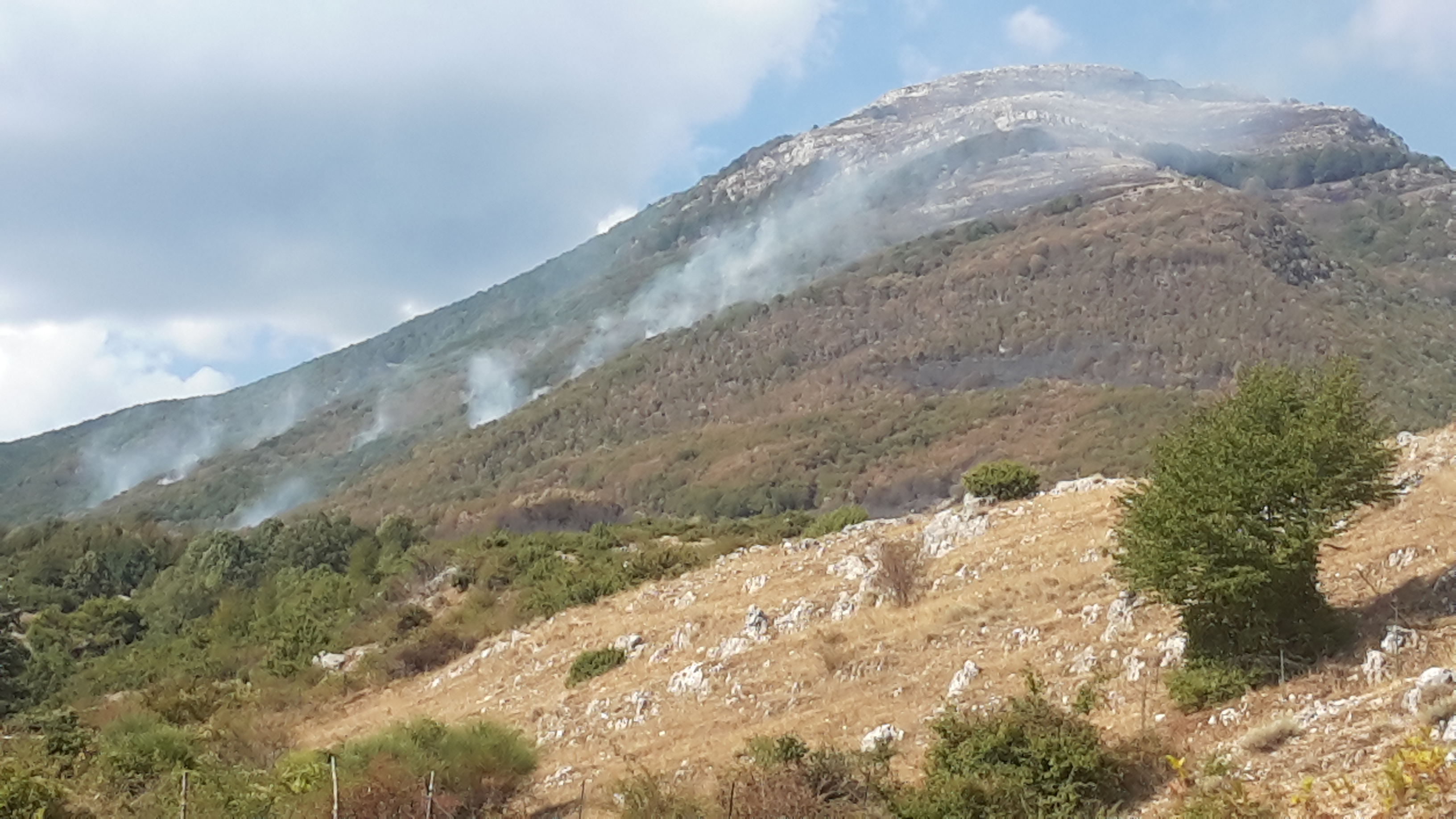 Torrida estate 2017, l' estate che ha fatto registrare le temperature più elevate da quando è iniziata la raccolta dei dati meteo. Nei monti Ernici, il monte Monna (1952 mslm) brucia sotto i colpi dei piromani e di Lucifero (alta pressione africana che ha raggiunto, a Frosinone, temperature attorno ai 40 °C con indice di calore attorno ai 47 °C. L' incendio ha toccato prima il versante ovest del monte Rotenaria (il balcone degli Ernici) e poi il versante est del monte Forchetta. L' incendio si é protratto per 26 giorni, fino al 1 settembre quando finalmente è stato spento dal primo temporale che é arrivato dopo più di quattro mesi di assoluta siccità. C' é da aggiungere che i mezzi antincendio intervenuti (costantemente un elicottero e saltuariamente un canadair) sono risultati del tutto inefficaci.